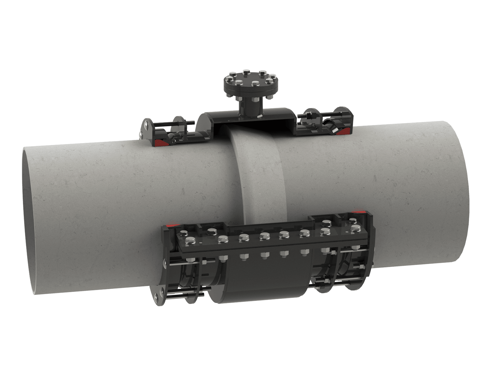 Duo-Fit repair couplers are manufactured and supplied in two pieces with heavy duty seals, allowing for a “wrap around” repair and no pipe shut down.